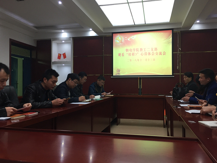 11月13日,K云体育官方入口教工第一党支部和教工第二党支部分别在理科楼连廊502会议室和理科楼南楼501会议室开展了观看《榜样3》心得体会交流会,交流会由各党支部书记主持,领导班子成员以普通党员身份参加了会议。会上,K云体育官方入口领导班子成员及全体教工党员分别作了交流发言,深入交流了学习心得体会。会后,全体教工党员上交了学习心得体会49份。