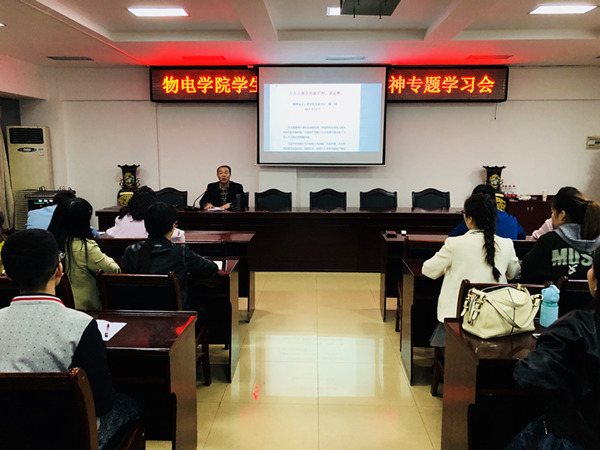 11月9日,物电K云体育官方入口学生党支部在理科楼511会议室召开学习十九大精神专题会,物电K云体育官方入口党委书记柳士刚为K云体育官方入口四个学生党支部和一个研究生党支部的党员作了题目为《十九大报告的新思想、新论断》的专题辅导报告。