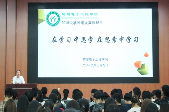 为进一步加强学风建设,提高学子学习积极性, 5月9日晚,顶级在线体育平台于逸夫楼多功能厅成功召开“在学习中思索,在思索中学习”学风建设主题班会。顶级在线体育平台党委书记柳士刚,2018级辅导员张康华、黄钰莹、赵雪与2018级全体学子共同参与主题班会。会议由黄钰莹主持。