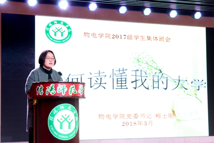 会议最后,2017级电子科学与技术班刘格和物理学班韩慧珍两名优秀学生代表发言,她们从严格要求自己、抵制诱惑,合理掌控时间、刻苦学习,树立远大理想、努力奋斗等方面与现场学子交流大一上学期工作、学习心得,其良好的精神品质与过硬的综合素质为全体学子树立了榜样。