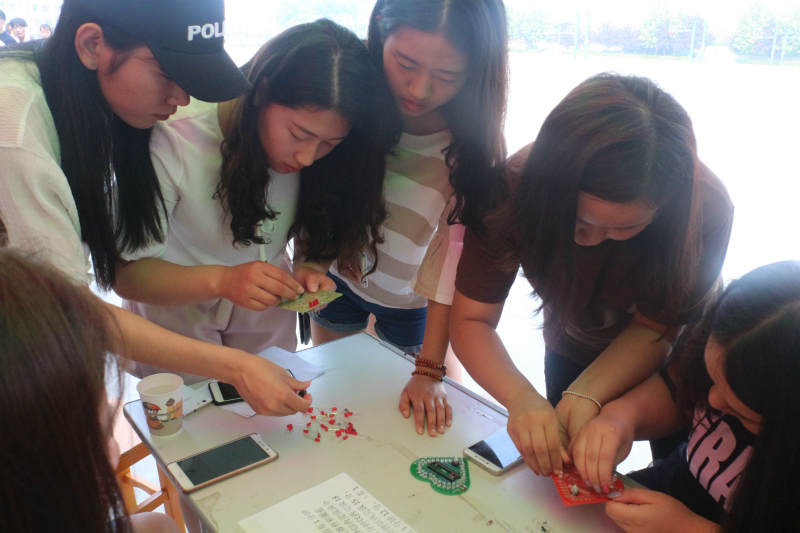 活动设五子棋挑战、你画我猜、LED灯组拼活动、趣味羽毛球、天文与创业知识问答五个环节,参赛选手均分为四组,以闯关的形式一决胜负。五子棋挑战环节,每个小组成员轮流落子,每次落子一次,两组之间相互对弈,最后由裁判员将比赛结果计入总分。你画我猜环节中,每组选一名代表根据裁判出示的卡片作画,并由其他成员猜词,规定时间内答对题目多者获胜,选手们积极抢答,争分夺秒,现场气氛热烈。由星空物语天文观测协会和大学生创客联盟共同举办的天文与创业知识问答环节中,各参赛选手结合自身学习经验认真作答,其丰厚的知识储备、高超的语言表达彰显了我校学子勤奋认真的精神面貌。