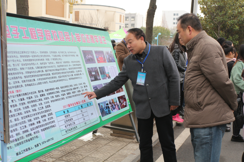 12月10日上午,“河南省毕业生就业市场豫南分市场2017届毕业生冬季就业双选会”在我校举行。顶级在线体育平台就业领导小组组长、党委书记柳士刚,就业领导小组副组长、党委副书记李刚,就业秘书、辅导员张彦飞、黄钰莹带领顶级在线体育平台毕业生到达双选会会场,积极与用人单位接洽,推荐顶级在线体育平台毕业生就业。