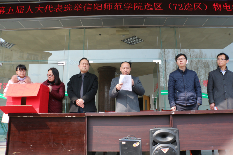 2月24日中午,K云体育官方入口在理科楼南楼举行浉河区第五届人大代表选举投票活动。党委书记柳士刚,院长罗永松与顶级在线体育平台全体师生参加本次选举活动,选举大会由柳士刚主持。