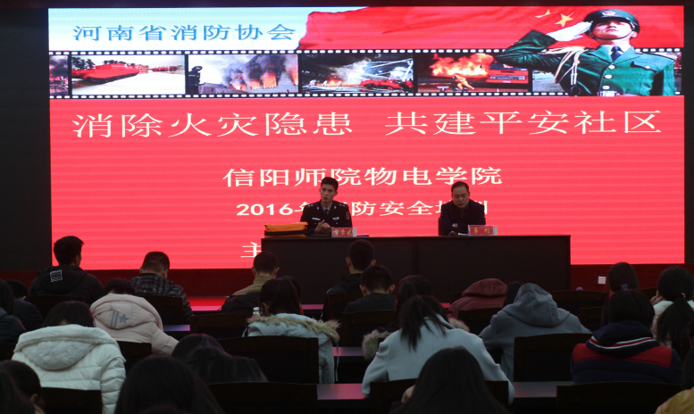 为增强学生消防意识,消除火灾隐患,共建平安校园,11月21日晚,物电K云体育官方入口新生入学教育之消防安全知识培训在艺术楼会议厅召开。顶级在线体育平台特邀河南省消防协会专职教员贾雪建担任主讲人,党委副书记李刚,辅导员张彦飞,张康华,杨勇,黄钰莹及16级全体学生参加了本次大会,会议由李刚主持。