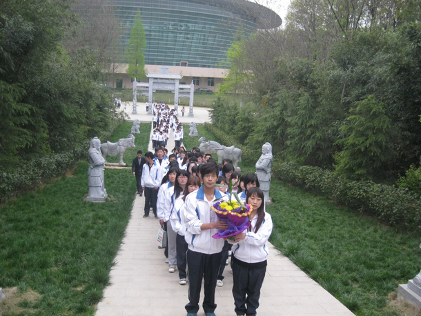 4月3日早晨7点,在顶级在线体育平台团总支书记刘华超的带领下,顶级在线体育平台2012级全体学生早早地来到校园内的景明墓陵园,为墓园区清除枯叶杂草,并为古墓添土插柳,以悼念伟大的历史文化名人何景明。