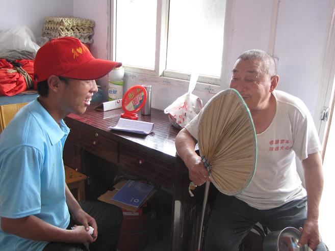 在当地村委书记的带领下,实践服务团带着慰问品来到了陈荣周老人的家中。当志愿者与陈荣周老人谈及建国60多年来,新中国发生的翻天覆地的变化时,他激动地拉住志愿者的手,动情地说:“共产党好啊!给我房子住,把家用电器也备齐了,吃得饱穿得暖,现在党还不忘我这个老骨头”。随后,陈荣周老人还向师生们讲述了自己父亲在解放战争中的光荣事迹。作为一名游击队队长,陈老的父亲带领游击队队员,在那个动荡的年代,英勇反抗敌人,从不畏惧,为祖国的革命事业奉献了生命。现场的一位志愿者更是激动地说:“陈老的话,让我知道了革命老一辈经历的艰辛与曲折。我们今天的幸福生活来之不易,是革命前辈们用生命换来的。作为当代大学生,我们一定要继承和弘扬革命前辈们艰苦奋斗的精神,努力学习,用所学知识服务于人民,服务于社会。”