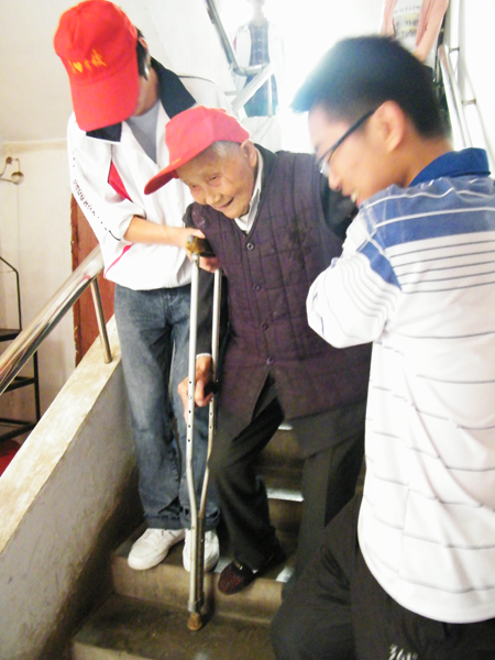 在老人们的起居室,志愿者与老人促膝交谈,询问他们的生活状况,并为他们讲解一些养生知识,帮他们剪指甲,现场温馨感人。志愿者送给老人们精致的小礼品,表达了大家对老人们深深的祝福。