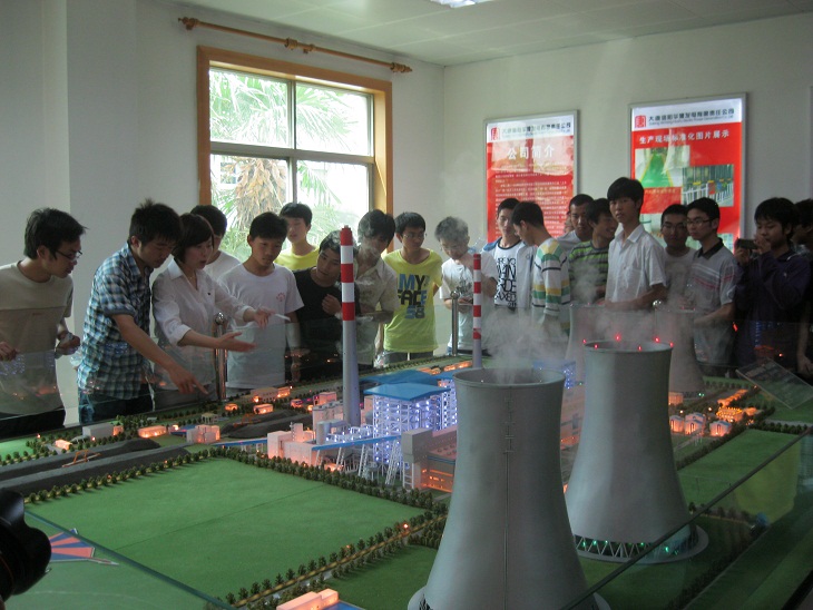 该集团本届开放日活动以“精彩电力,文化大唐”为主题,顶级在线体育平台参加本次生产见习的学生共100人次,覆盖了顶级在线体育平台11级电子类的专业和班级,顶级在线体育平台参观团受到了大唐集团的亲切接待。同学们在解说员的带领下,观看了大唐公司的企业宣传板,了解了大唐公司的企业背景、企业文化和所获荣誉。随后同学们在企业统一配发安全帽后进入发电厂区分别对该集团的汽机房、锅炉房、集控中心、冷却塔等厂区进行了实体参观。两位解说员就该集团的企业文化、技术特点、岗位需求、核心竞争力等几点给大家做了专门介绍。在参观过程中,解说员与同学们积极互动,同学们不时发问,问题主要集中在企业在电力发展过程中需要哪方面的技术人才、最看重人才哪个方面及企业在技术岗位的发展路线等方面,解说员对同学们的提问进行了耐心的解答。近两个小时的生产见习在同学们的欢声笑语中缓缓落下帷幕。