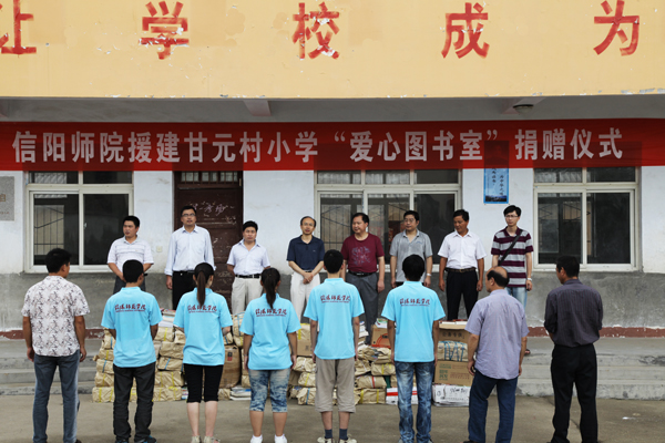 仪式上,我校党委宣传部部长单刚首先致辞。他向大力支持此次下乡活动的相关领导干部表示衷心的感谢。他指出,爱心捐赠活动寄托了信阳师院学子对甘元村小学学生的期望,希望我校大学生在此次社会实践中以“受教育、长才干、做贡献”为目标,坚持社会实践与社会观察相结合的原则,针对基层经济社会发展和人民群众生产生活中的实际需求,用自己的爱心和行动,为社会贡献力量,实现促进自身成长和服务基层发展的互助双赢。他还真心希望甘元村小学的孩子们珍惜学习机会,充分利用好“爱心图书室”,不断完善自己,发展自己,努力成为国家的栋梁之才。