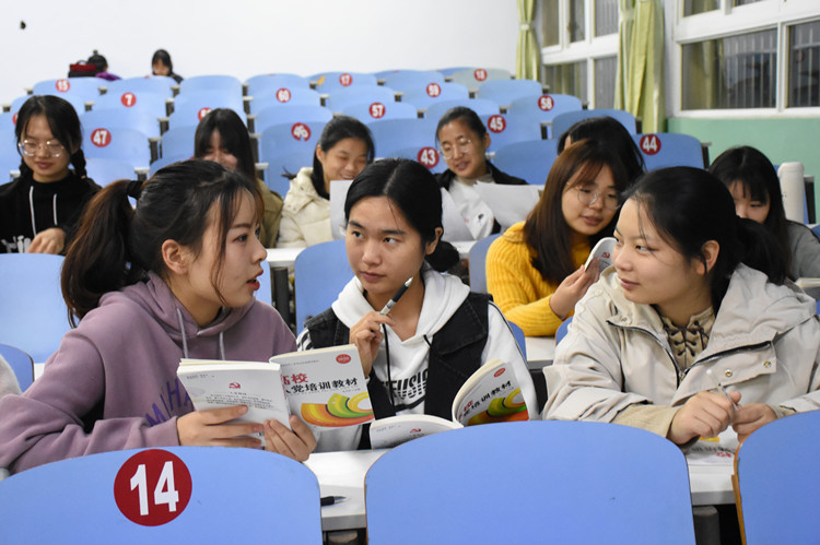 讨论会上,党员发展对象围绕“大学生如何坚定理想信念”与“大学生党员应如何发挥先锋模范作用”两方面深入开展学习讨论,小组成员认真思考,现场气氛活跃。经激烈的讨论后,每位学子依次发表自身对这两个问题的见解,他们一致认为,作为党员发展对象,要加强理论学习,提升政治素养,打扫思想灰尘,强化党性锤炼,夯实思想信念根基,正确认识国家命运和前途,提高自身综合实力,做新时代中国特色社会主义建设者。通过近期的学习培训,党员发展对象进一步明确了奋斗目标,以党员的标准要求自己,正确认识社会发展与自身发展的关系,努力奋斗实现人生梦想。小组长总结,要起到发挥先锋模范的带头作用,就要提高自身的政治思想和理论修养,加强理论学习,勇于担当责任,从小事做起,践行全心全意为人民服务的宗旨,积极踊跃参加社会实践活动,在学习、生活中发挥模范带头作用。党员发展对象在发言中指出,要进一步加强思想品德修养,刻苦学习,积极参加社会实践,不断向党组织靠拢。
