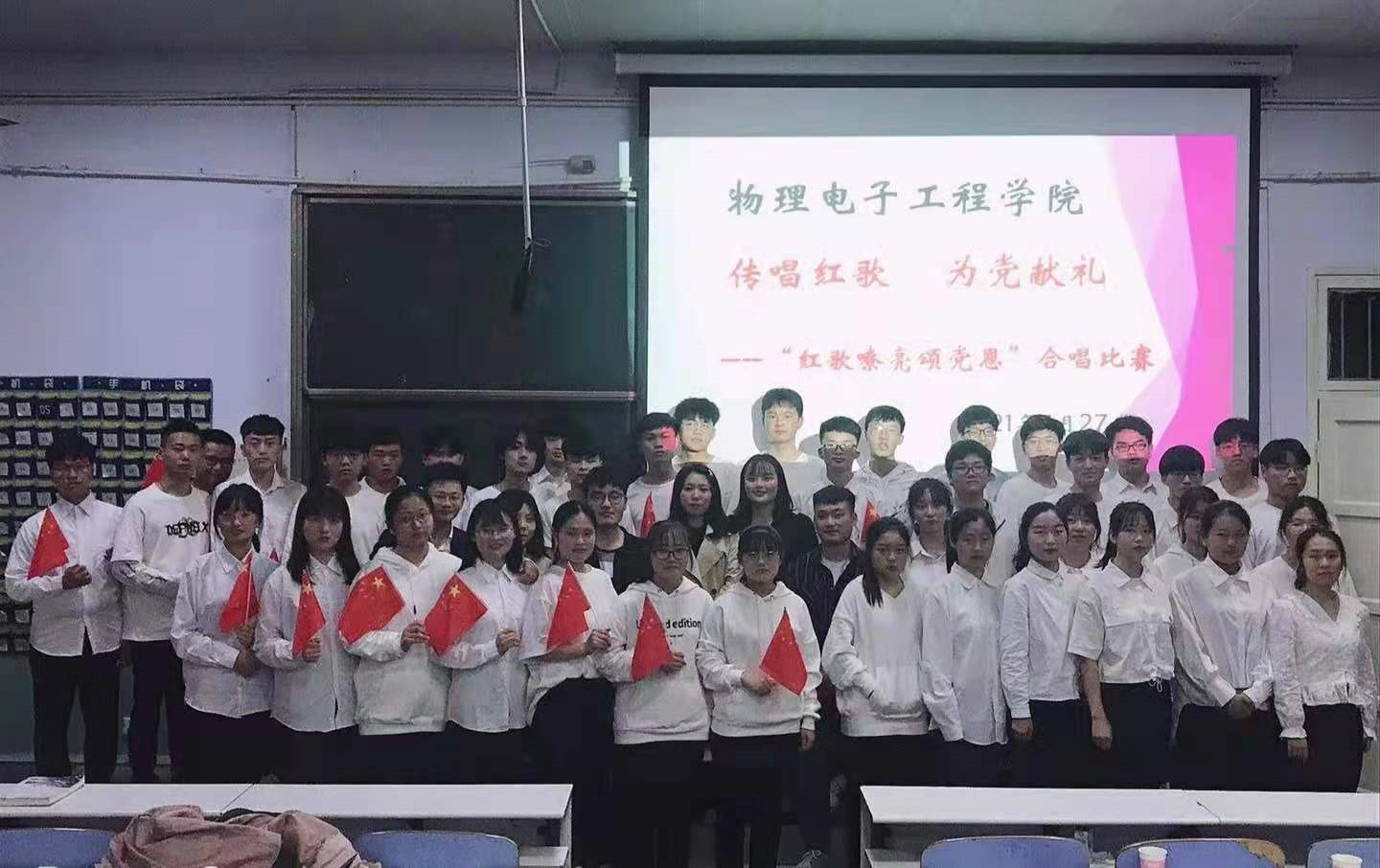 弘扬民族文化,传唱红色金曲,激发爱国热情,展现物电风采。为庆祝建党100周年,顶级在线体育平台于2021年4月27日晚6:30在教二T1举行“传唱红歌 为党献礼”——红歌嘹亮颂党恩合唱比赛。文K云体育官方入口团委老师柳家琪,专职辅导员陈辉,旅游K云体育官方入口团委老师赵子鉴,数学与统计K云体育官方入口专职辅导员杨帆,化学化工K云体育官方入口专职辅导员严赫,物电K云体育官方入口团委老师牛文娟参加此次活动,并担任此次比赛评委。此次合唱比赛充分展示了顶级在线体育平台学生对党、对祖国最真挚的爱,也展现顶级在线体育平台学子饱满的精神面貌。