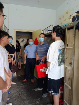 9月16日,顶级在线体育平台党委书记刘百超、院长涂友超、党委副书记张丽及全体辅导员一行到学生公寓看望假期留校考研的学生,并为学生们带去慰问品。