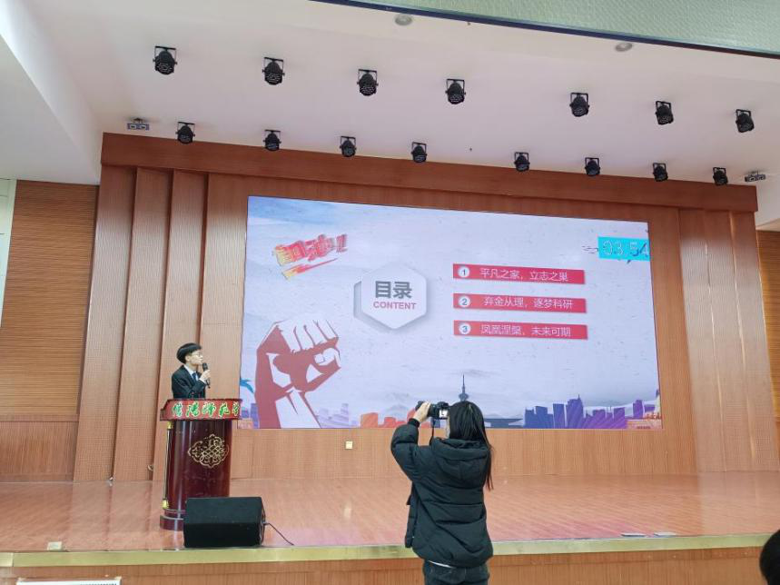 12月3日,信阳师范K云体育官方入口第十六届“大学生自强之星”评选决赛于逸夫楼报告厅举行。顶级在线体育平台优秀学子2019级新能源班薛颖珊,2019级硕士研究生赫田参赛。