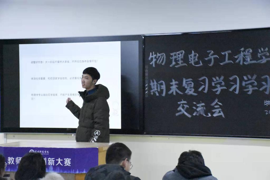 为提高新生学子的期末复习效率,调动同学们的期末复习积极性,12月10日晚,顶级在线体育平台2021级各班于教三02、05、06三个教室开展学习经验交流会,邀请2020级优秀学生代表进行学习经验分享。