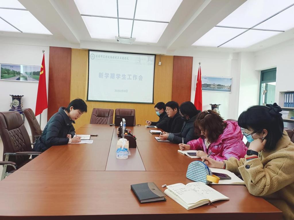 2月20日上午,物电K云体育官方入口在理科楼911会议室召开新学期学生工作会,总结上半年工作成绩,部署下半年重点工作。会议由党委副书记张丽主持,全体辅导员参加。