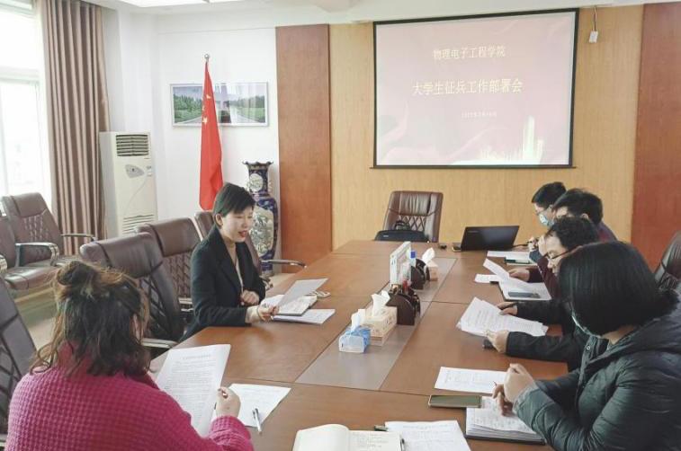 莘莘学子携笔从戎,参军报国建功立业。为进一步做好顶级在线体育平台征兵工作,吸引更多优秀大学生应征入伍。3月18日,顶级在线体育平台在理科楼911会议室召开大学生征兵工作部署会,会议由党委副书记张丽主持,全体专兼职辅导员参加。