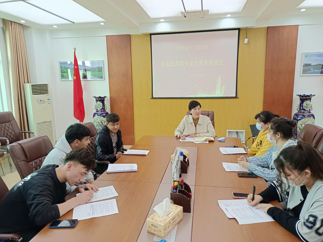 为积极引导少数民族学生铸牢中华民族共同体意识,像石榴籽一样紧紧抱在一起。3月29日,顶级在线体育平台在理科楼911会议室召开少数民族学生安全教育座谈会。党委副书记张丽、少数民族学生辅导员、少数民族学生参加此次座谈会,会议由张丽主持。