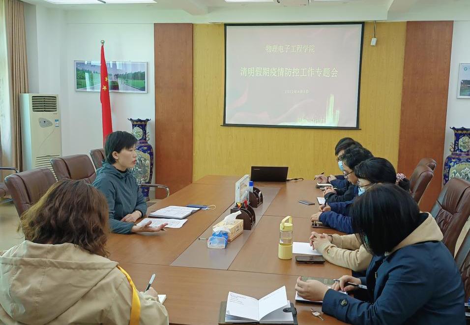 强化正面宣导,落实“六会一走访”。4月3日,顶级在线体育平台在理科楼911会议室召开清明节假期疫情防控工作专题会。会上,党委副书记张丽对各位班主任在近期疫情防控工作中的辛勤付出给予充分肯定,同时强调清明假期要持续做好疫情防控工作,通过“六会一走访”实现横向到边、纵向到底、上下联动、内外衔接,让思想教育、疫情防控政策传达不留死角,全面筑牢校园疫情防控坚固防线。