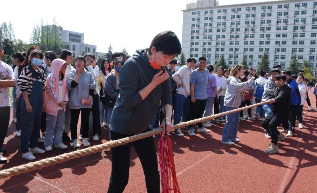 趣味运动会。赛场上,参赛同学摩拳擦掌、蓄势待发,观赛同学兴致高昂、加油呐喊。一声哨响,比赛正式开始,这边拔河队员咬紧牙关、卯足干劲,牢牢抓住绳子进行激烈比拼,另一边跳绳选手看准时机,齐心协力激情跳大绳。现场比赛氛围紧张热烈,加油呐喊声贯穿全场,充分锻炼同学们运动拼搏精神,提升团队协作意识。