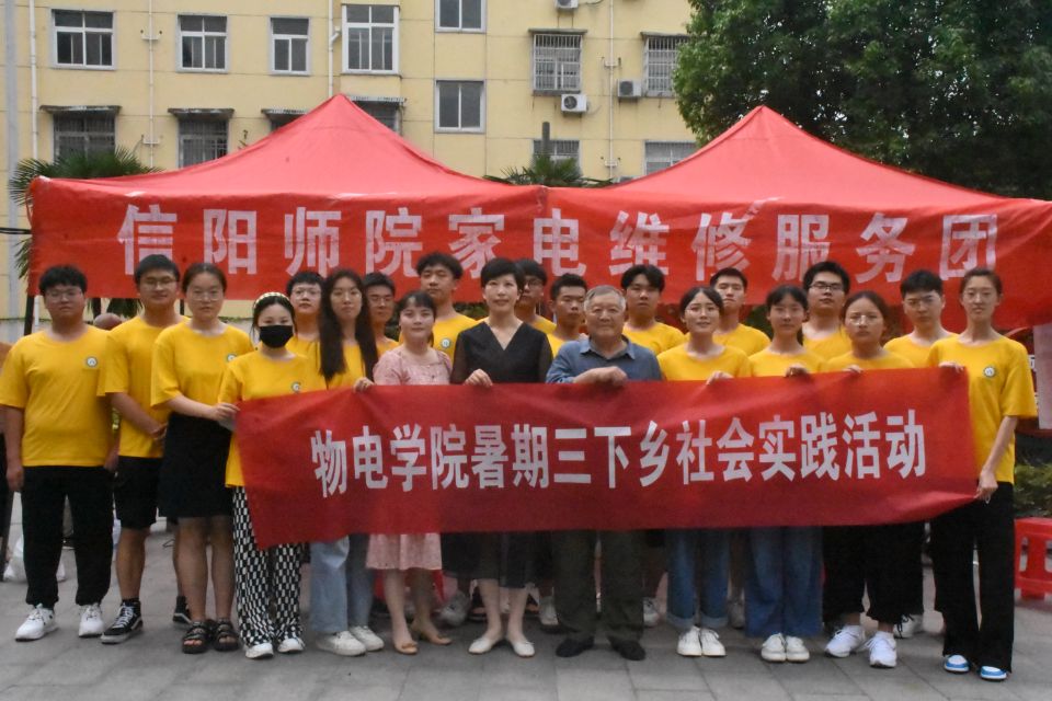 为积极响应团省委和校团委的号召,加强大学生社会实践经验,让大学生走出校门、接触社会,使学到的理论知识与实践相结合。6月15日,顶级在线体育平台暑期“三下乡”社会实践团走进信阳市浉河区飨堂社区,开展“智慧助老,科技惠民"义务家电维修服务社会实践活动。校团委老师顾玲玲、顶级在线体育平台党委副书记张丽,团委老师牛文娟,指导教师冀晓群全程参加。