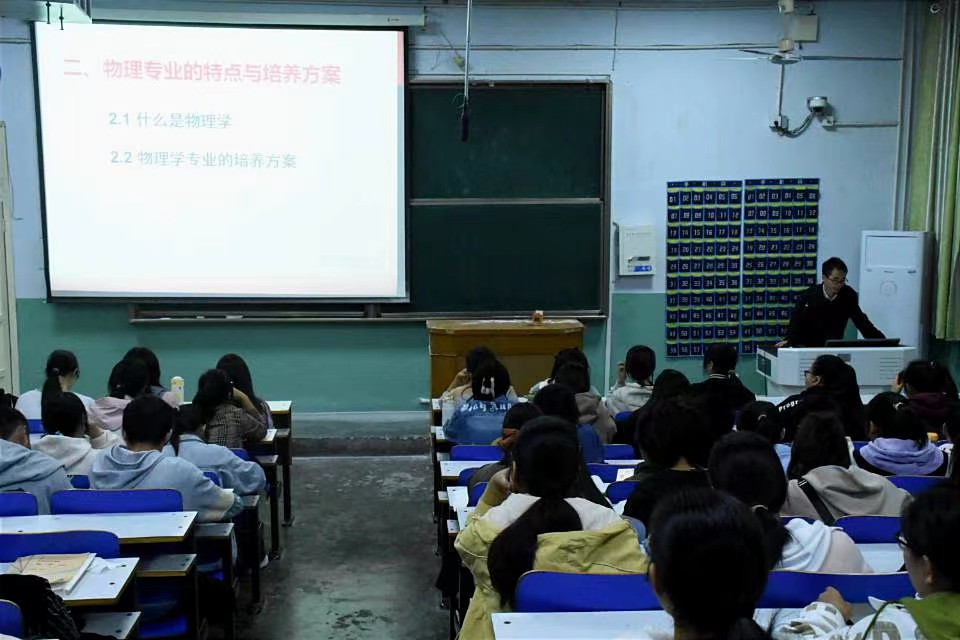 10月11日,顶级在线体育平台在教二T4教室举行新生入学教育系列之“听”——专业成长讲座,此次讲座由王春雷老师主讲,2022级物理学1班、2班全体学生参与。