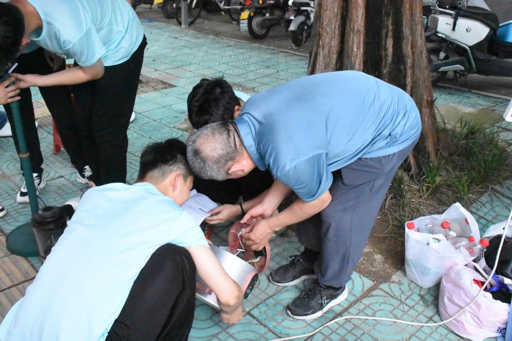 维修现场,志愿者们顶着酷暑炎热,忍着蚊虫叮咬,热心帮助居民修理电风扇、电磁炉、电饭煲等小家电,用心用情用力帮助群众解决急难愁盼问题,得到居民的交口称赞。维修的家电种类有:智能空调扇、智能电视遥控器、电饭锅、热水壶等共百余件家用电器设备。同学们认真负责的态度得到了金牛山社区工作人员和居民的一致好评。