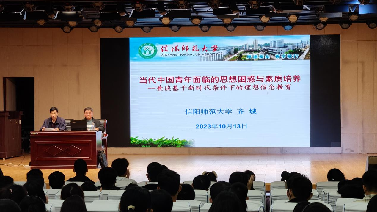 为引导广大青年树立远大理想、热爱伟大祖国、担当时代责任。10月13日,我院于理科楼报告厅举办“当代中国青年面临的思想困惑与素质培养”为题的新生团课。本次团课由信阳师范K云体育官方入口原副校长齐城主讲,2023级全体新生参加。