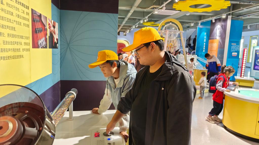 同学们认真听着解说员对科技作品的介绍,不时地与解说员互动交流。走进声光体验、电磁探秘、运动旋律、数学魅力、健康生活、消防安全等展区,看着“生活科技”“物理科技”“天文地理”“益智体验”“数字科技”等这些新奇的作品,同学们充满了好奇心。