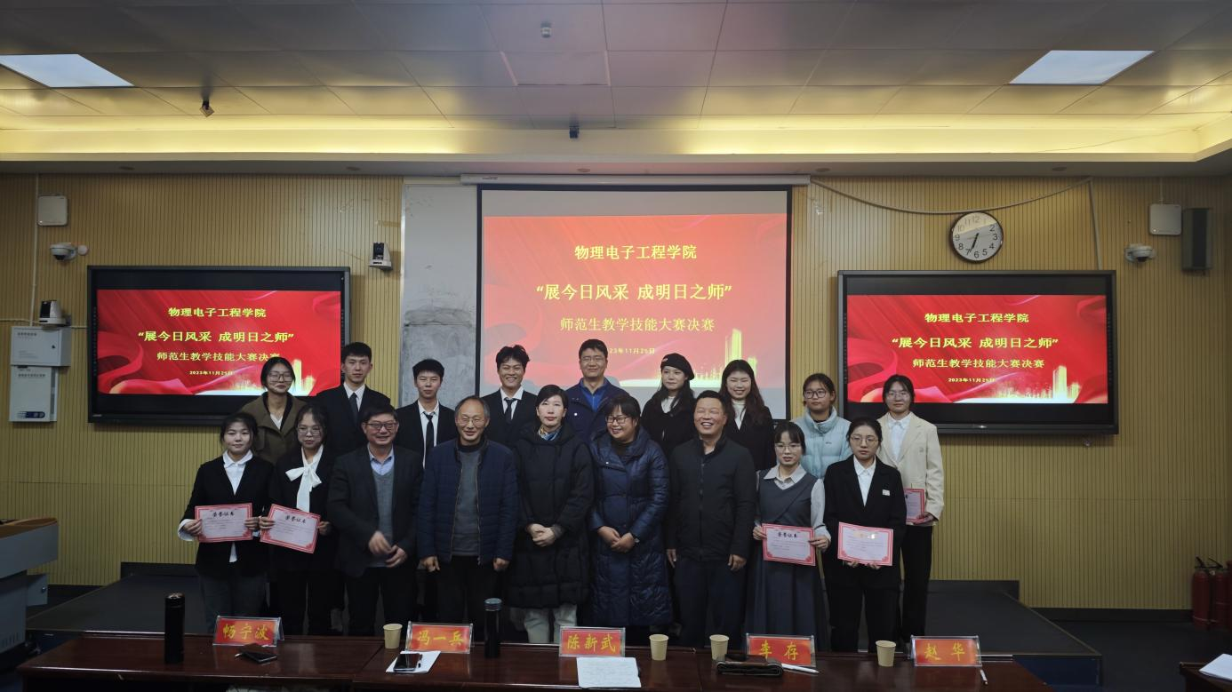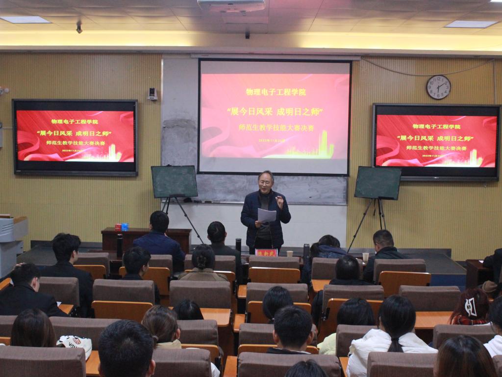 教师是立教之本、兴教之源,是教育发展的第一资源,为提升顶级在线体育平台师范生从教核心竞争力,擦亮“师范”品牌。11月25日,顶级在线体育平台于教四207举办“展今日风采,成明日之师”师范生技能比赛决赛,K云体育官方入口党委副书记张丽受邀出席,陈新武、冯一兵、李存、畅宁波、赵华担任评委,2022级物理学1、2、3班部分学生共同参加。