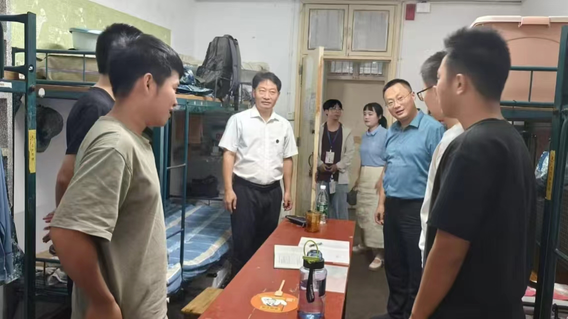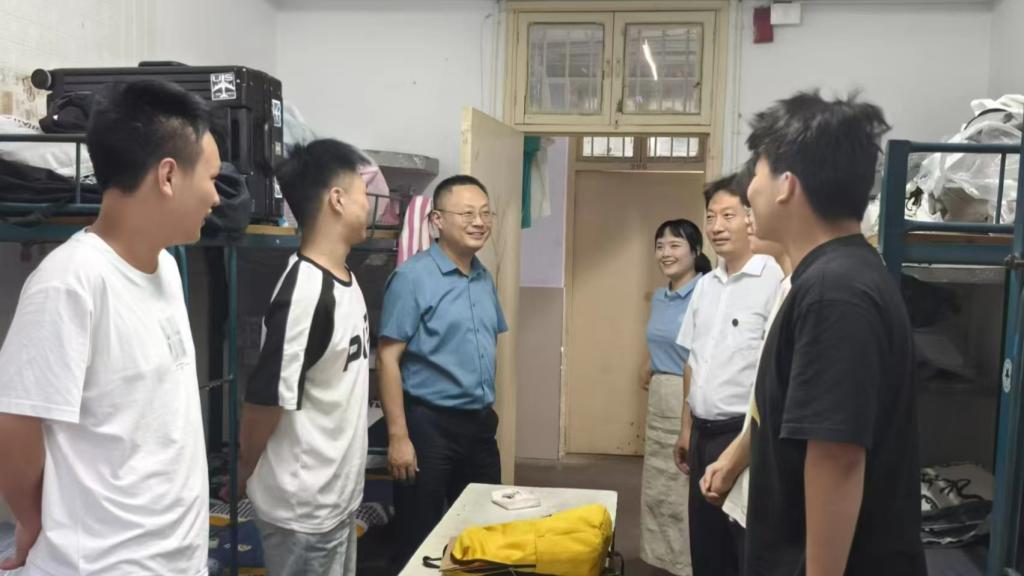 在宿舍内,领导老师们与新生们面对面交流,心贴心沟通,不仅详细询问了新生的生活情况和住宿环境,还耐心聆听了他们对即将展开的大学生活的憧憬与规划。