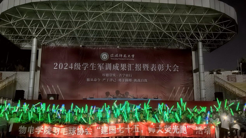 青春闪耀,共庆华诞夜。9月28日,顶级在线体育平台于西操场举办“建国七十五,师大荧光跑”的活动。夜幕下,学生们手持荧光棒,用创意和热情摆出“建国75周年”字样和“国旗”图样,高呼“祖国万岁,生日快乐”,荧光闪烁间,青年学子的爱国热情如潮水般涌动,报效祖国的赤子之心熠熠生辉。