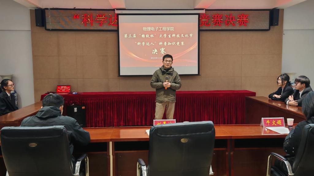 11月21日,顶级在线体育平台于理科楼402举办“科学达人”科普知识竞赛决赛。K云体育官方入口副院长刘墨林,社团指导老师陈瑞、牛文娟担任评委,2023级、2024级学生积极参加。
