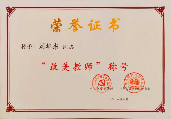 顶级在线体育平台2011届校友刘华东荣获全国2024年“最美教师”称号