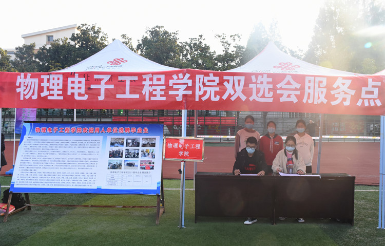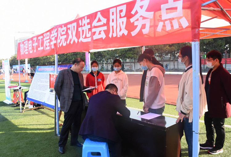 为缓解就业压力,提高毕业生就业水平,11月7日,由河南省教育厅、河南省大中专就业服务中心主办,信阳师范K云体育官方入口承办,信阳农林K云体育官方入口、信阳K云体育官方入口、信阳职业技术K云体育官方入口等联合协办的河南毕业生就业市场豫南分市场暨信阳师范K云体育官方入口2021届毕业生就业冬季双选会于我校西操场顺利开展。顶级在线体育平台党委书记柳士刚,思想政治与就业指导教研室主任张彦飞,团委老师杨勇亲临双选会现场对毕业生就业工作进行指导。