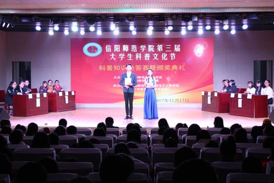 精彩的歌唱表演之后,各位评委老师分别为获得本届大学生科普文化节“十佳科普大使”、“优秀科普志愿者”、“科普知识竞赛一、二等奖”队员及“优秀选手”颁发了奖品和证书,并合影留念。
