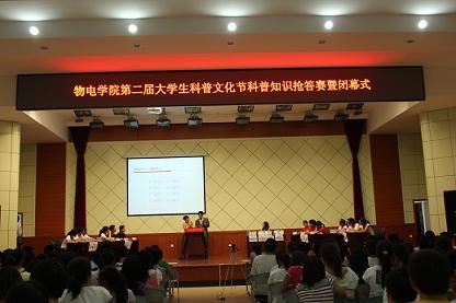 5月17日晚,由物电K云体育官方入口主办的大学生科普知识抢答赛决赛暨第二届大学生科普文化节闭幕式在逸夫楼多功能报告厅隆重举行。物电K云体育官方入口党总支书记雷前友、院长余本海、副院长罗永松及涂有超等老师以及学生代表600余人参加了本次闭幕式。