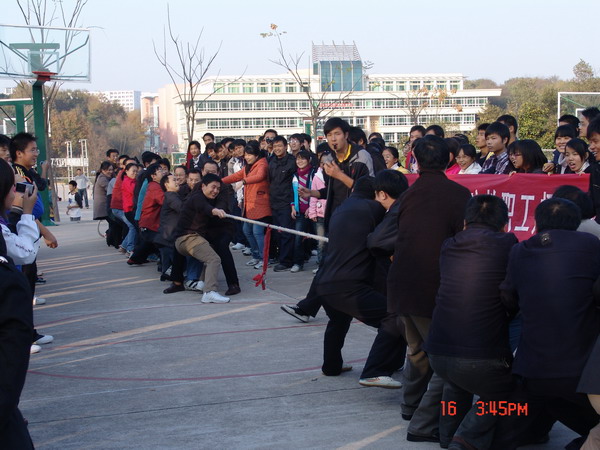 11月16日下午在人文楼西侧的篮球场举行教职工拔河比赛,校工会副主席罗东来到赛场进行指导,比赛采取三局两胜制。教职工首先在雷前友书记和余本海院长的带领下,两队展开了激烈的竞争,比赛场上参赛队员团结一致,使出浑身的力气,尽力拼搏,赛场外同学们自发组成的拉拉队加油声不断。接下来是教职工胜出的一队在校工会罗主席的带领下和K云体育官方入口的学生们进行了一场友谊赛。教职工们很轻松地取得了胜利,比赛结束后,师生互相握手,相互交流。
