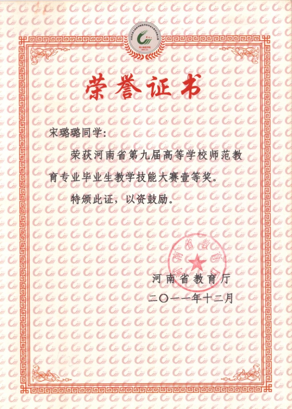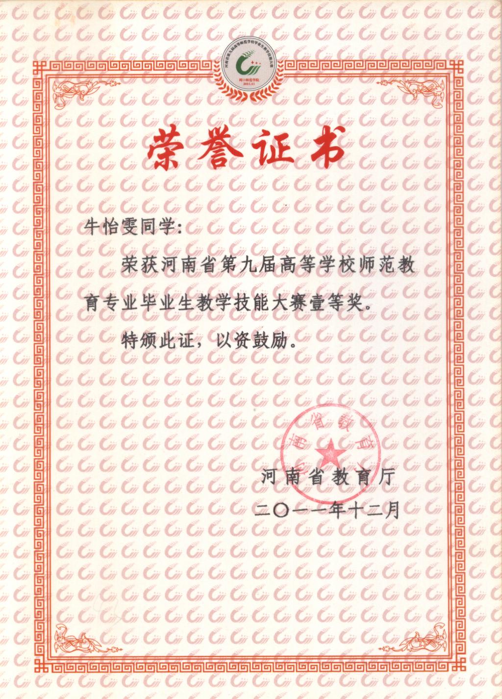 2011-河南省第九届教学技能大赛证书