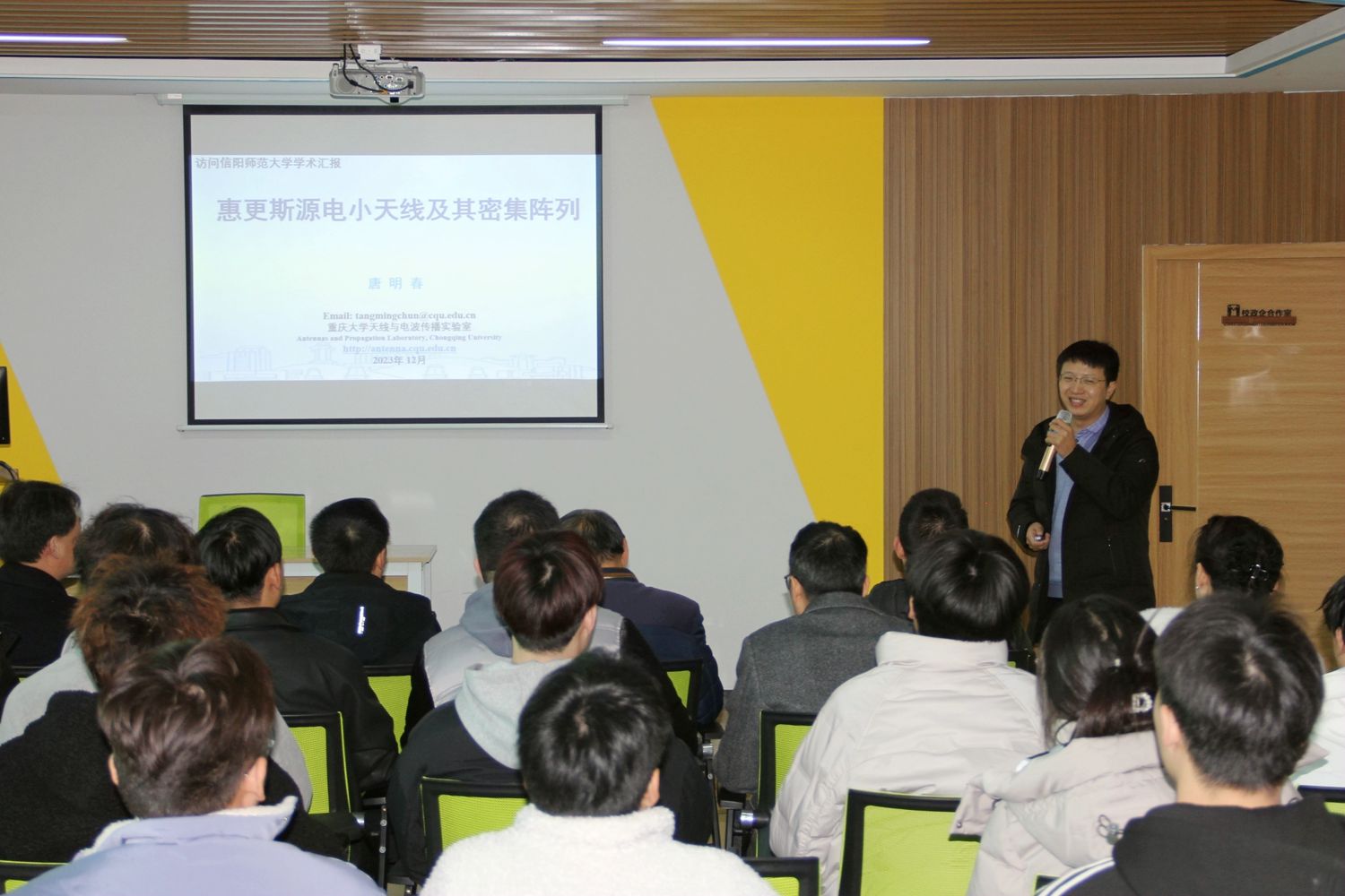 12月2日,重庆大学唐明春教授应邀来顶级在线体育平台讲学,在理科楼507室作了一场题为“惠更斯源电小天线及其密集阵列”的学术报告,部分老师及研究生聆听了报告。报告会由副院长龚克主持。