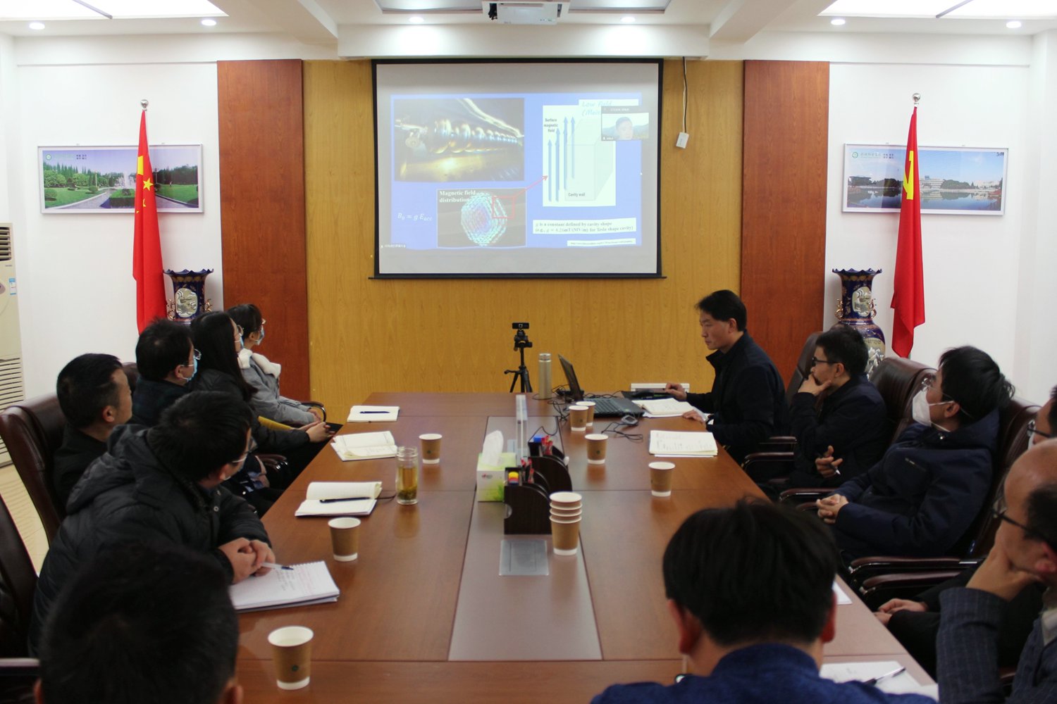 11月29日下午,应K云体育官方入口邀请,教育部“长江特聘”教授、国家杰出青年基金获得者、南京大学闻海虎教授在腾讯会议网络平台为顶级在线体育平台师生做了题为“奇妙的超导世界”的学术报告。K云体育官方入口教师及部分研究生、本科生等在线聆听了报告,报告会由副院长龚克主持。