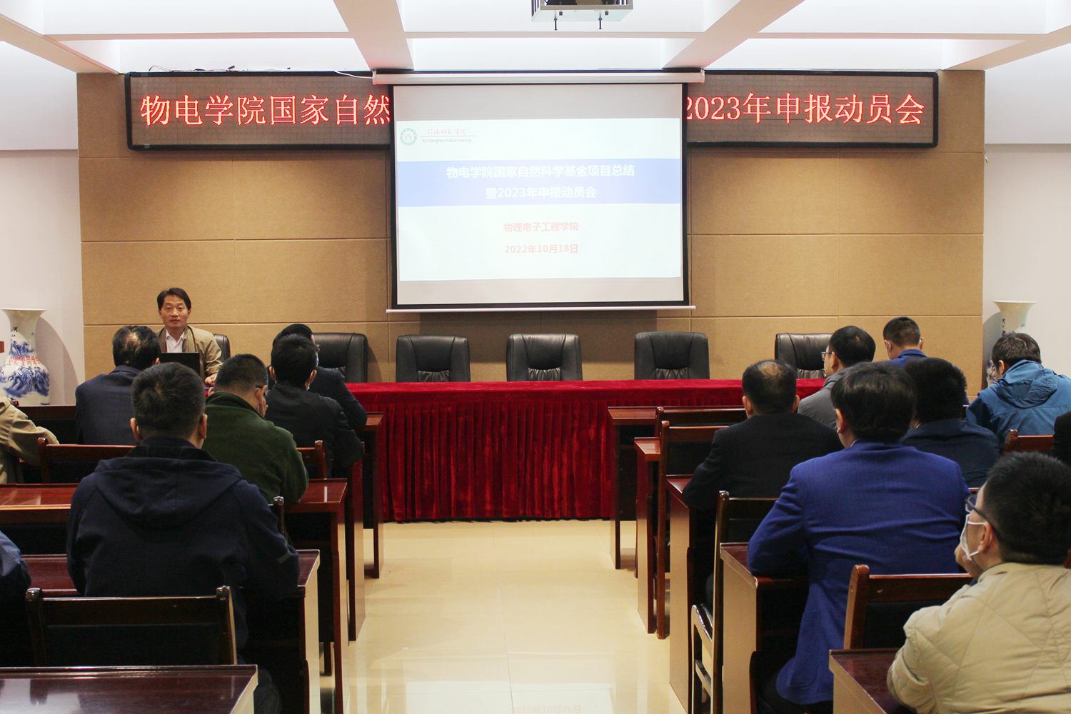 为加强国家自然科学基金项目管理、积极推动2023年申报工作,10月18日顶级在线体育平台在理科楼四楼会议室召开了“国家自然科学基金项目总结暨2023年申报动员会”。K云体育官方入口党委书记刘百超、院长涂友超、副院长龚克、刘墨林、汤清彬出席会议。具有高级职称、博士及拟申报2023年国家自然科学基金项目的50余名教师参加了动员会。会议由龚克主持。